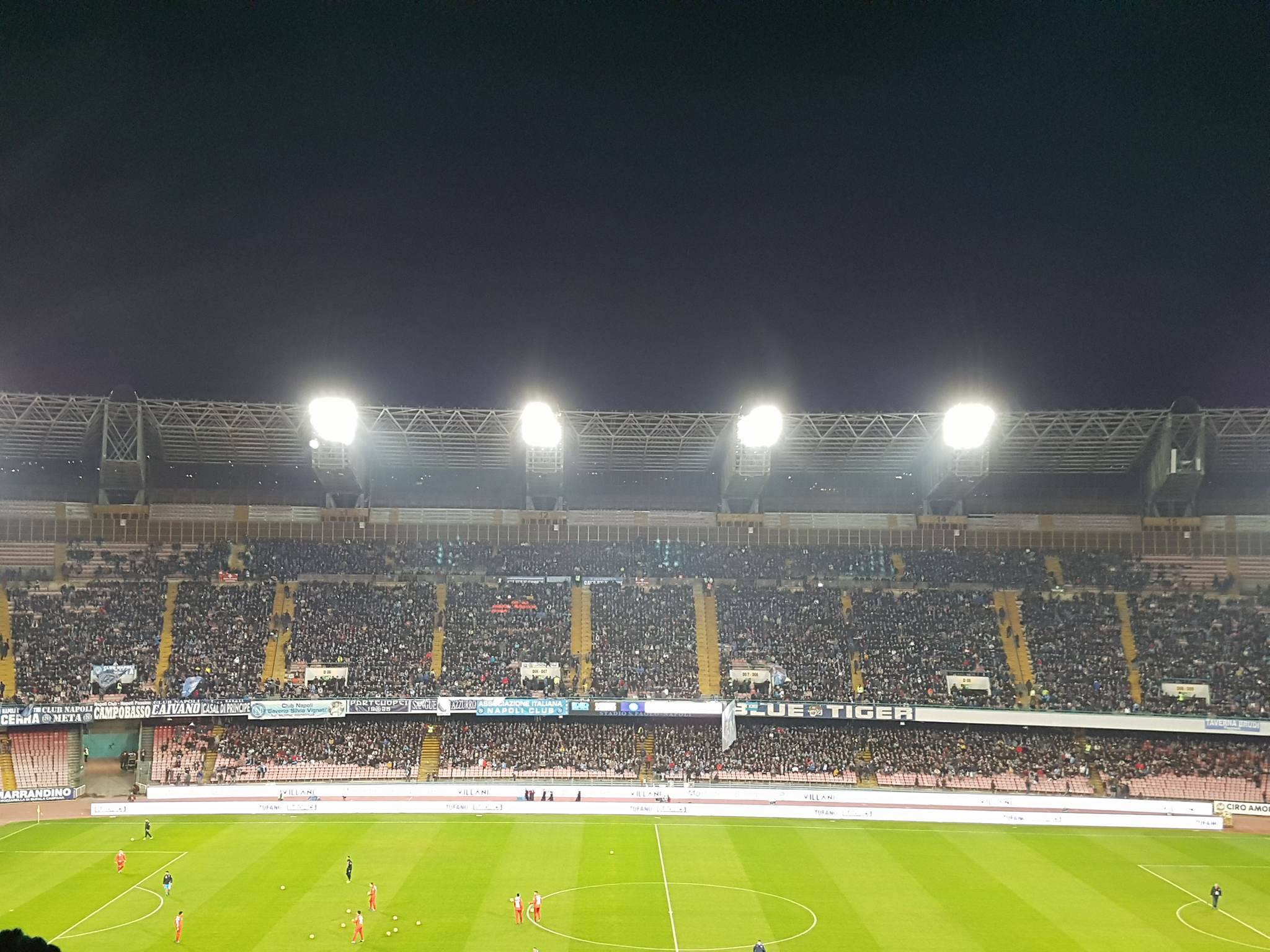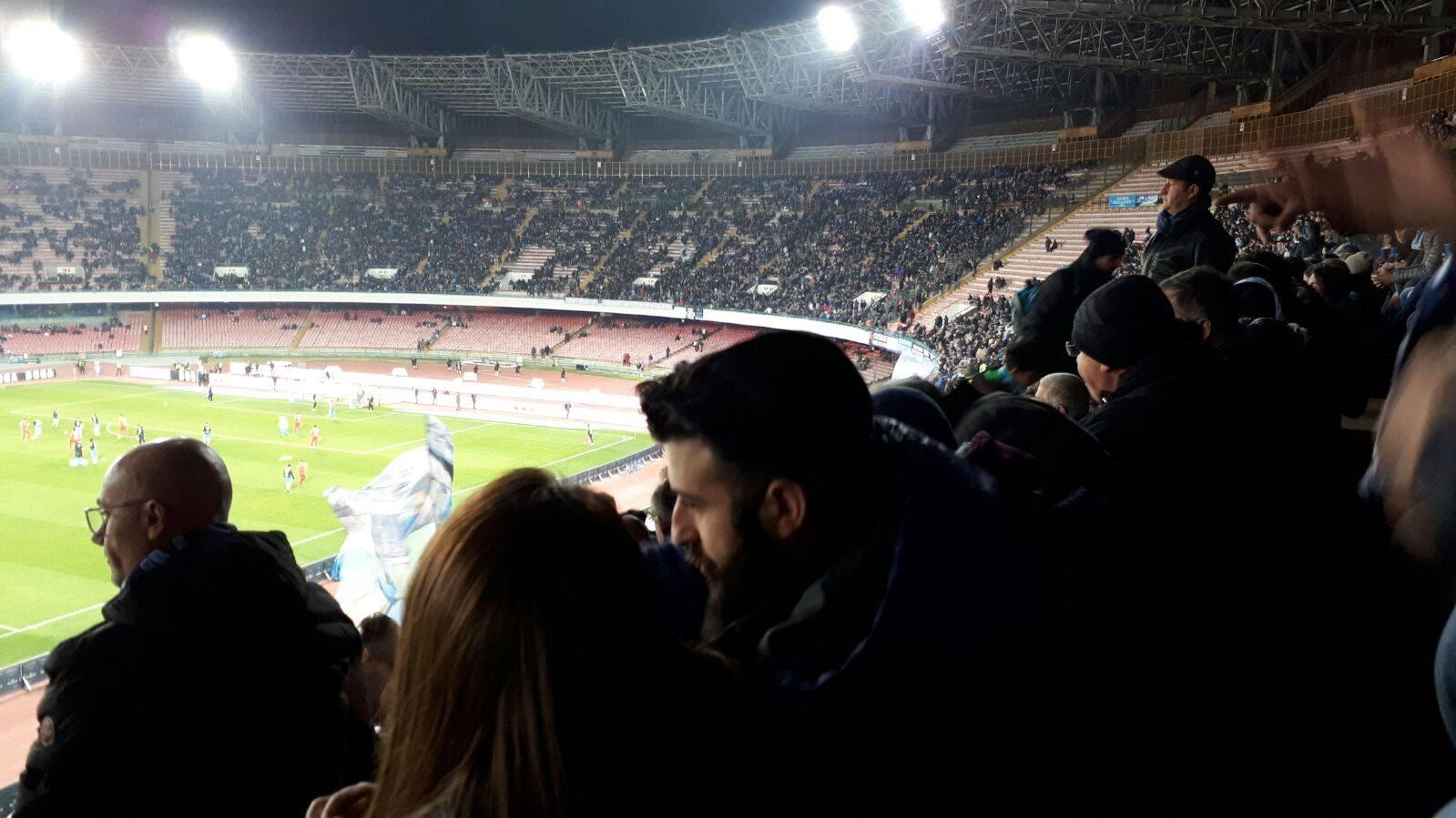 Bella cornice di pubblico al San Paolo per Napoli-Genoa. Sono circa 40.000 i tifosi presenti all’impianto di Fuorigrotta per l’anticipo della 24esima giornata di Serie A. Tra questi circa 300 supporter rossoblu (IN ALTO LE FOTO).