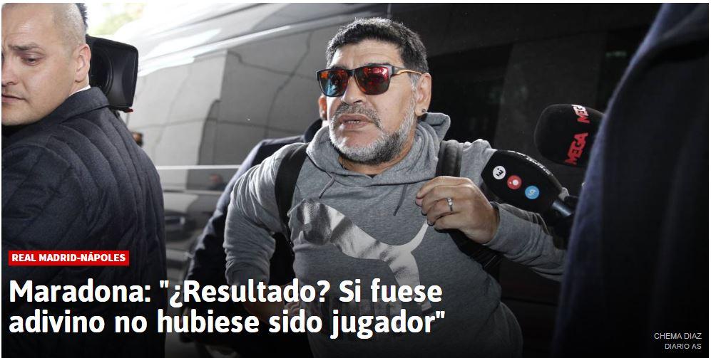 Secondo quanto riferito da AS.com, Maradona è da poco giunto all’hotel Eurostar Mirasierra in Calle Alfredo Marquerie, 43. Accompagnato dalla sicurezza, alloggerà nella stessa struttura riservata alla SSC Napoli per dare una carica maggiore alla squadra.
