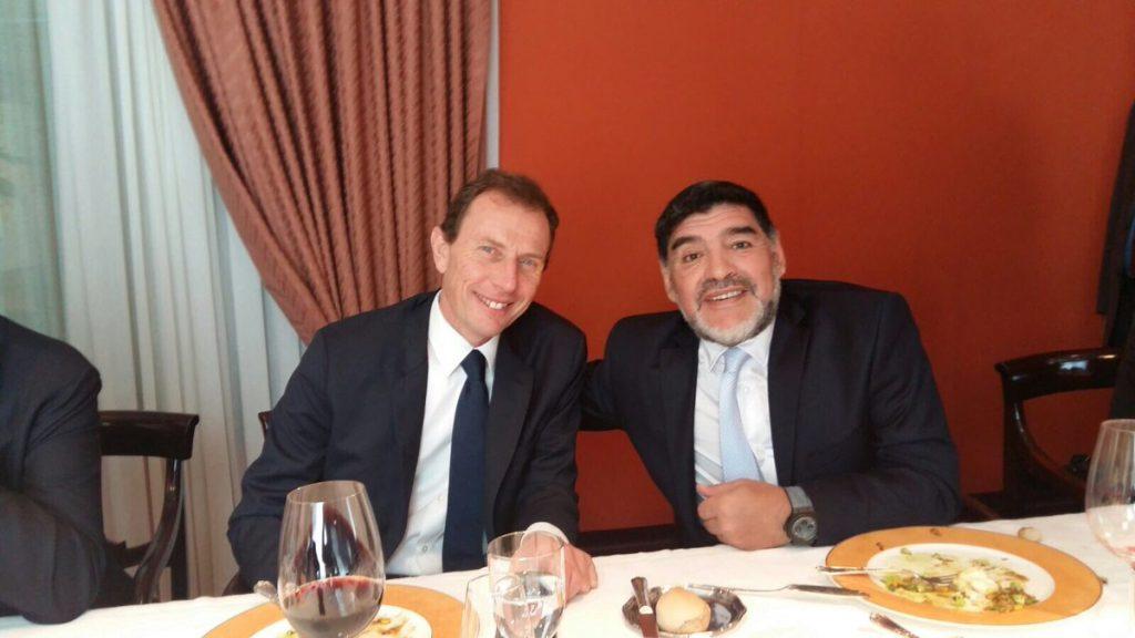Nel primo scatto viene immortalato il menù servito ai presenti, mentre nell’altro, più significativo, vede protagonisti Diego Armando Maradona e Emilio Butragueno seduti sorridenti fianco a fianco.