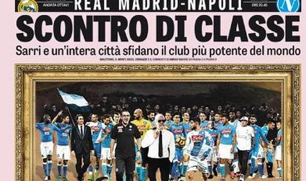 Sulla Gazzetta dello Sport il titolo è: “Scontro di classe. Sarri e un’intera città sfidano il club più potente al mondo“.