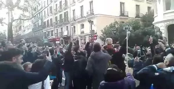 Sono tanti i tifosi che in queste ore stanno postando video e foto sui social per manifestare la propria gioia. Per dimostrare come Madrid, nonostante la sconfitta del Napoli, si sia tinta lo stesso d’azzurro. In questo particolare video, inviatoci da un tifoso partenopeo, si possono vedere centinaia di tifosi intonare il coro “Un giorno all’Improvviso”.
