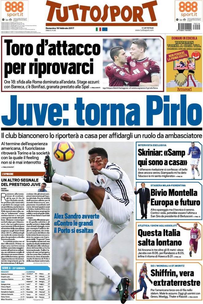 Tuttosport infine apre la sua prima pagina con “Juve: torna Pirlo“. Il club bianconero riporterà a casa il centrocampista per affidargli un ruolo da ambasciatore.
