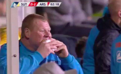 A un certo punto il portiere di riserva del Sutton, Wayne Shaw, ha addentato un tramezzino in panchina: per qualcuno, riporta Fox Sports, si trattava di una scena preparata.