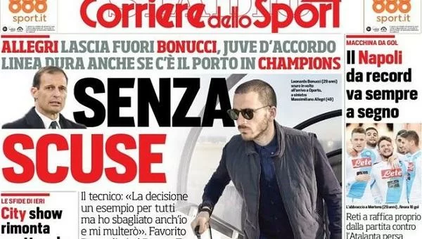 Le prime pagine sportive che troveremo tra poche ore in edicola si concentrano sulla giornata di Champions League che vedrà la Juventus affrontare il Porto in trasferta, oltre alla polemica che ha visti coinvolti Allegri e Bonucci.
