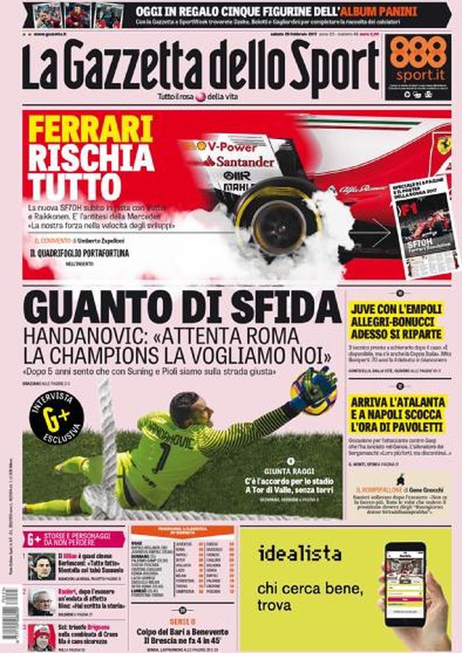 Scorri in alto le prime pagine di Gazzetta dello Sport, Corriere dello Sport e Tuttosport.