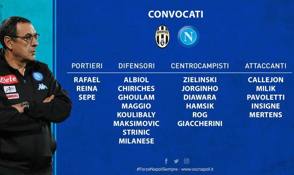 I convocati: Reina, Rafael, Sepe, Albiol, Chiriches, Ghoulam, Maggio, Koulibaly, Maksimovic, Strinic, Milanese, Jorginho, Zielinski, Diawara, Hamsik, Rog, Giaccherini, Callejon, Insigne, Mertens, Pavoletti, Milik.