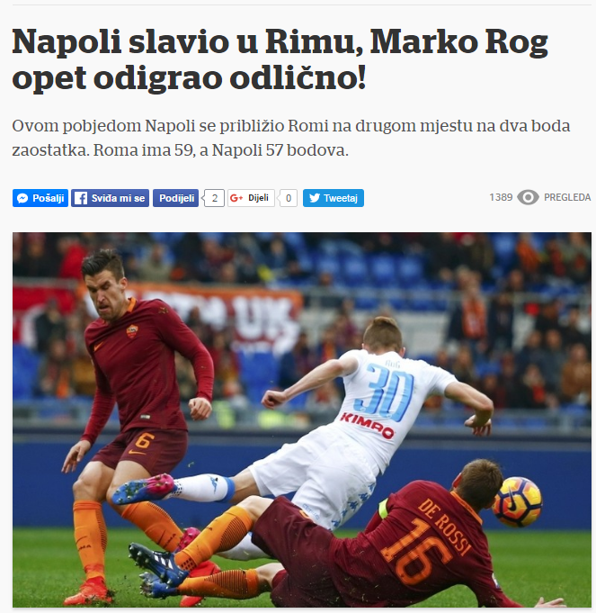 Una gara che non è passata sotto silenzio quella di Marko Rog, in particolare in patria. Dove i media croati guardano sempre con grande attenzione a quello che rappresenta un patrimonio dell’intero movimento calcistico del Paese.