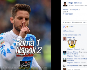 L’argentino, sul proprio profilo Facebook, ha postato una foto che ritrae Mertens intento a fare il gesto del “silenzio”, una scelta quantomai sibillina e simbolica, quella del Pibe de Oro.