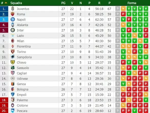 Giornata importante in Serie A, la ventisettesima, che regala alcuni risultati molto importanti ai fini del campionato. Spicca sicuramente il pareggio della Juventus, fermata sull’1-1 ad Udine. L’Inter va a valanga in quel di Cagliari (1-5), mentre Belotti (tripletta) abbatte in solitaria il Palermo. 3-1 il punteggio finale.