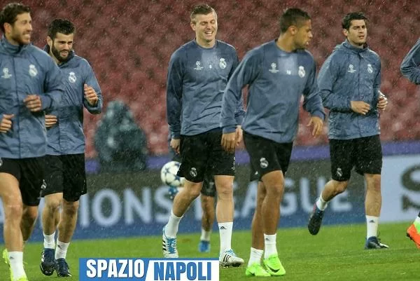 Il Real Madrid alle 19, nella serata della vigilia del match col Napoli, ha svolto la rifinitura al San Paolo. Cristiano Ronaldo, Bale, Benzema, Modric e tanti altri campioni hanno calcato il manto erboso dello stadio di Fuorigrotta, sotto gli occhi di tantissimi giornalisti.