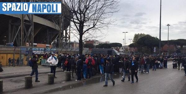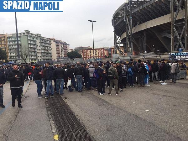 Come riportano i nostri inviati al San Paolo, ci sono code lunghissime all’esterno dello stadio, nonostante manchino circa 5 ore dal fischio d’inizio. I cancelli sono stati aperti alle ore 15 e parte dei distinti già è praticamente piena!