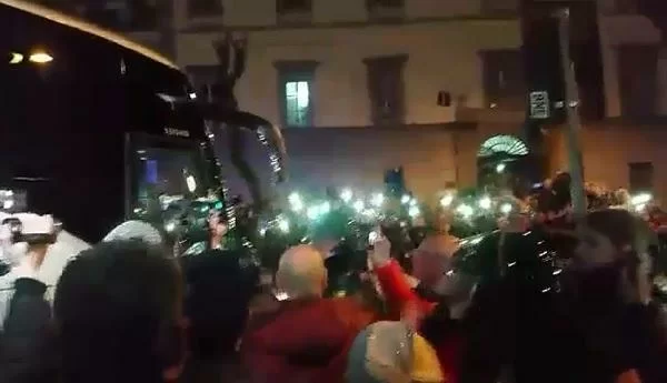 Grida, urla, occhi spalancati. Scene di panico puro quelle che si sono percepite nel centro di Napoli. E invece no, si trattava “solo” del Real Madrid che abbandonava l’Hotel Caracciolo, l’albergo che li ha ospitati in questi due giorni, per recarsi allo stadio San Paolo.