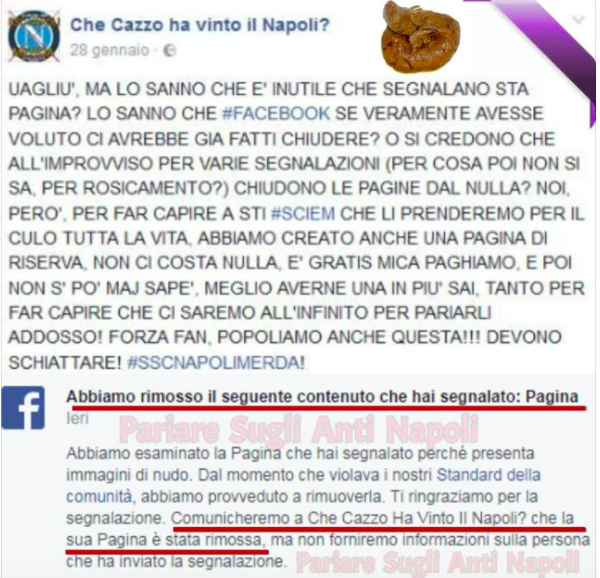 Era – bisogna usare il passato – il caso della pagina Facebook “Che c***o ha vinto il Napoli”, creata da tifosi juventini e diventata ben presto un coacervo di odio e razzismo nei confronti di Napoli e dei napoletani.