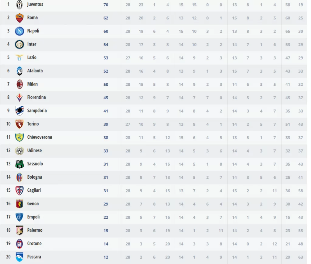 Termina la 28° giornata di Serie A, con i successi di Napoli, Inter e Roma.