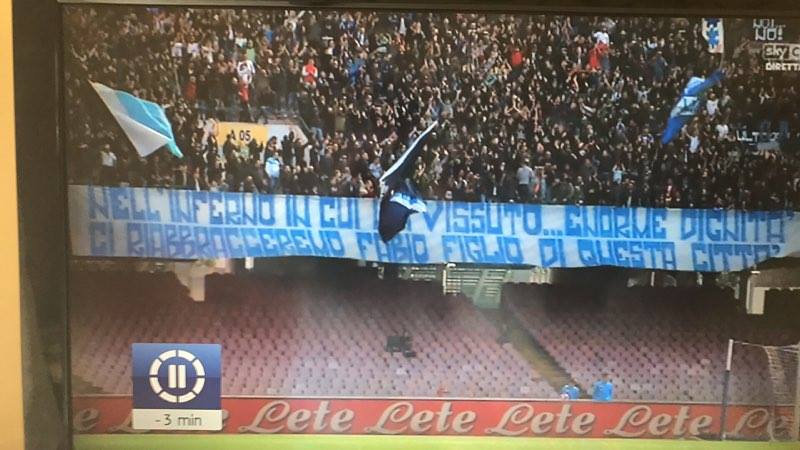 Un brutto episodio che ha commosso tutti i napoletani, e non solo. Oggi, durante Napoli-Crotone, la Curva A ha voluto omaggiare Quagliarella con uno striscione: “Nell’inferno in cui hai vissuto… enorme dignità! Ci riabbracceremo, Fabio, figlio di questa città” (CLICCA QUI per la risposta di Quagliarella)