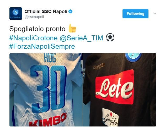 Scelta anche la maglia con la quale la formazione di Sarri scenderà in campo: quella bianca. A certificarlo una foto postata sul profilo Twitter della società.