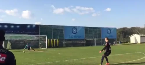 L’ultimo postato dalla società azzurra vede il portiere Sepe imporsi su Milik: il sinistro del polacco non finisce in rete per il buon intervento dell’estremo difensore napoletano.