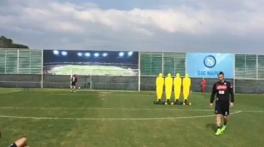 Clima disteso in allenamento a Castel Volturno. Questa mattina i calciatori del Napoli si sono soffermati anche a calciare le punizioni e su una di queste c’è stato un simpatico siparietto.