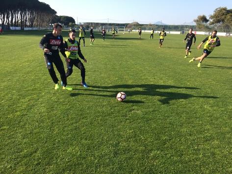 Allenamento pomeridiano per il Napoli a Castel Volturno. Gli azzurri preparano il “lunch match” di Empoli, anticipo della 29esima giornata di Serie A in programma domenica alle ore 12,30.