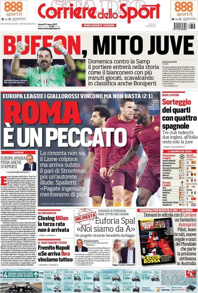 Particolare rilievo viene dato all’eliminazione della Roma dall’Europa League per mano del Lione. Spazio anche ai sorteggi europei che vedranno la Juventus impegnata in Champions League. Immancabili, poi, le tante notizie relative al calciomercato e soprattutto qualcosa sulla voce Ibrahimovic-Napoli.