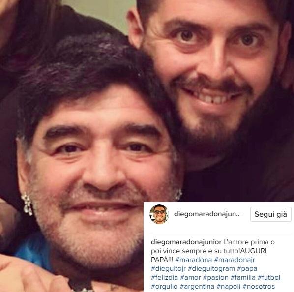 Questo il messaggio pubblicato su Instagram da Diego Armando Maradona jr e dedicato al padre Diego in occasione della festa del papà che si celebra oggi, 19 marzo.