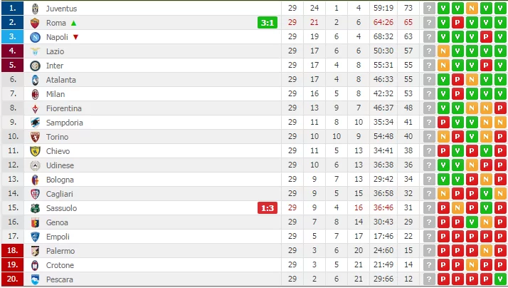 Sipario sulla 29a giornata di Serie A con il posticipo dell’Olimpico tra Roma e Sassuolo. L’undici di Spalletti si impone sugli emiliani per 3-1, ritrovando la seconda posizione in classifica.