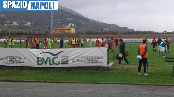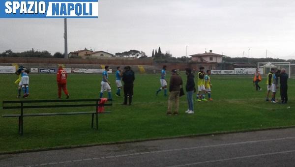 5′ – Ammonito Gaetano. Il classe 2000 in forza al Napoli cade in area avversaria, ma per l’arbitro Luciani della sezione di Roma 1 si tratta di simulazione.