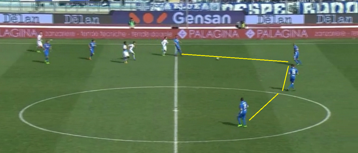 Manca la pressione del Napoli su scorrimento palla della prima linea dell’Empoli