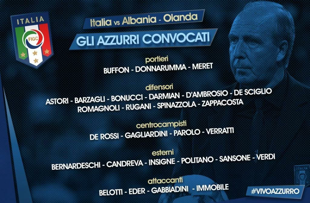 La FIGC, con un post su Twitter, ha reso noti i numeri di maglia dell’Italia per le sfide contro l’Albania, valida per le qualificazione ai Mondiali, e l’Olanda in amichevole.
