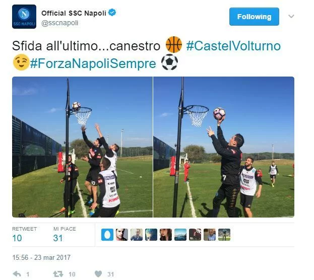La SSC Napoli infatti con un tweet ha voluto condividere con i tifosi la partita di basket che ha visto protagonisti tra gli altri Callejon e Pavoletti.