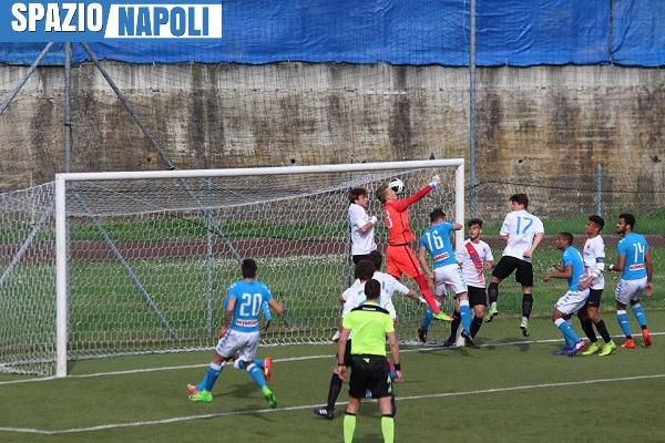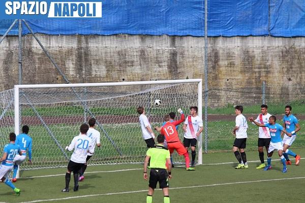 Ed è proprio sull’episodio della rete annullata che proviamo a soffermarci. L’azione è stata molto chiara: angolo dalla destra battuto da Liguori, palla che spiove nel cuore dell’area con il portiere del Bruges, Teunkens, che combina la frittata non bloccando una palla sfiorata da Esposito, e che sbatte sulla faccia dell’estremo difensore belga terminando in rete. Si sarebbe trattato del vantaggio partenopeo, invece l’arbitro annulla. Non per carica sul portiere (come inizialmente si era pensato, ndr), ma perché, da quanto raccontato dallo stesso Saurini a fine gara, Esposito (calciatore con la maglia numero 16, ndr) sarebbe prima entrato in porta e poi sarebbe uscito, commettendo infrazione.