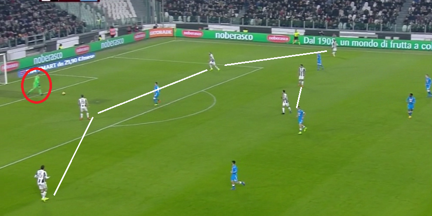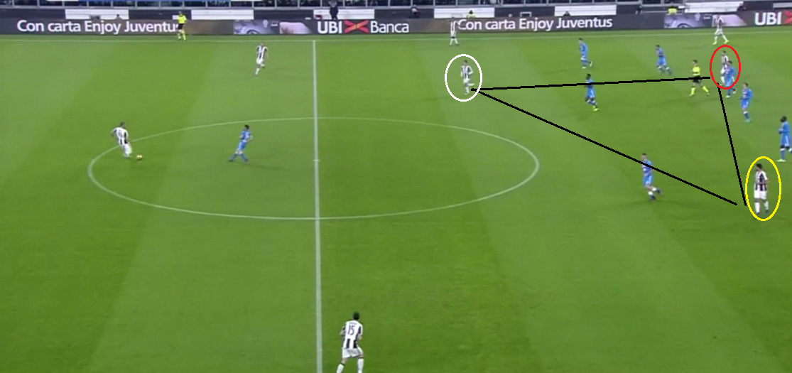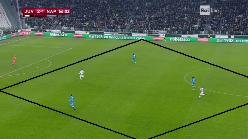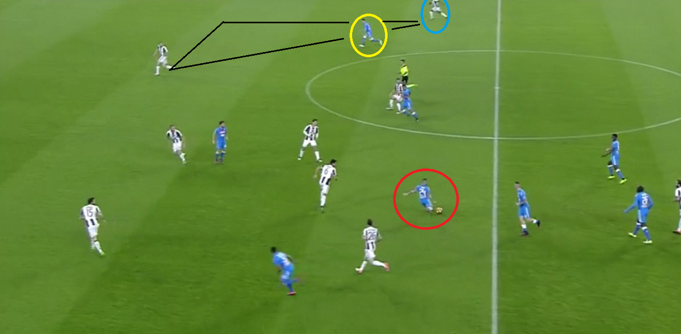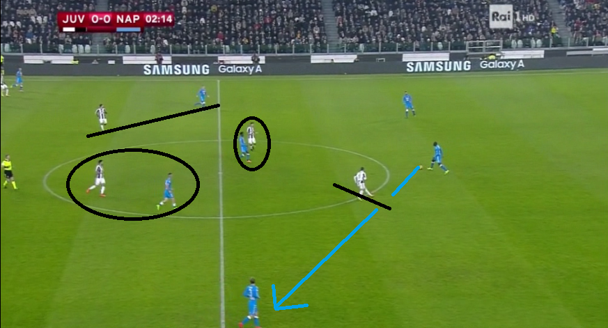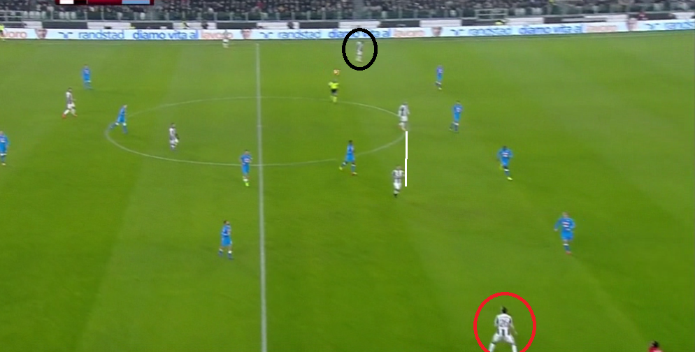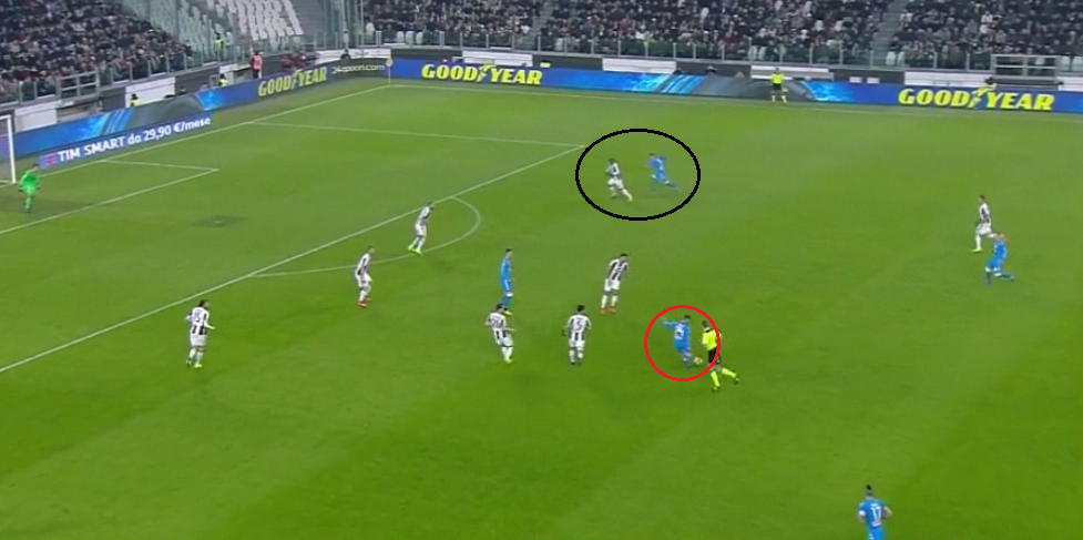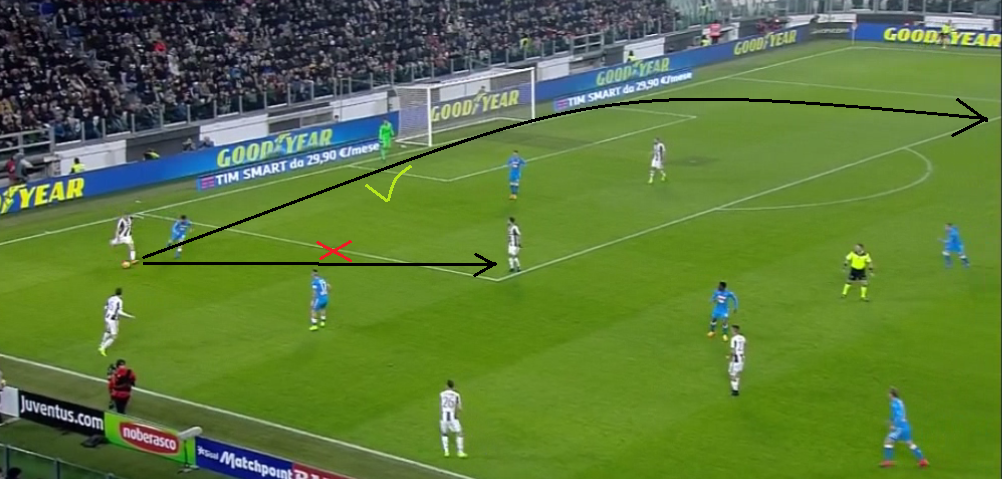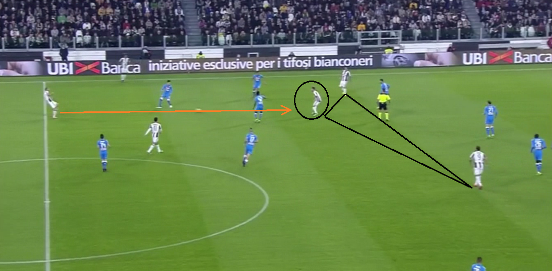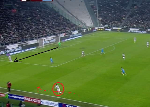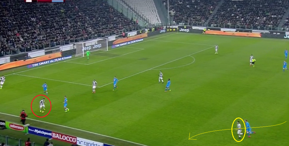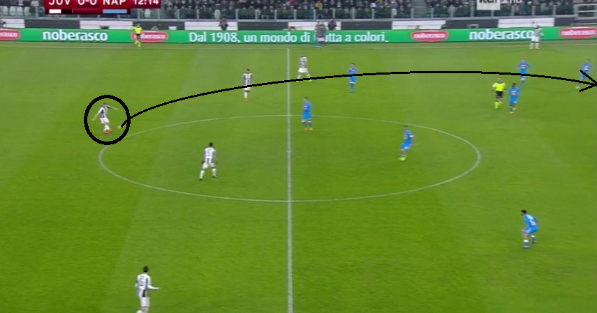 La scelta di Allegri di schierare Asamoah al posto di Alex Sandro è basata principalmente sulla capacità di Asamoah nel leggere tatticamente le varie situazioni di gioco, potendo così tenere a bada Callejon. Con Alex Sandro in campo l’approccio non cambia, ma cambia la capacità del terzino brasiliano di tenere al massimo la concentrazione per tutta la gara sulla copertura da offrire. Il goal dell’1-1 momentaneo in campionato ne è la prova: