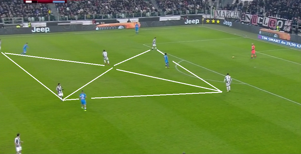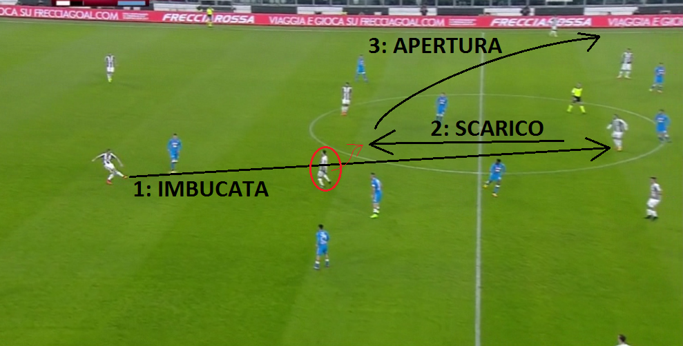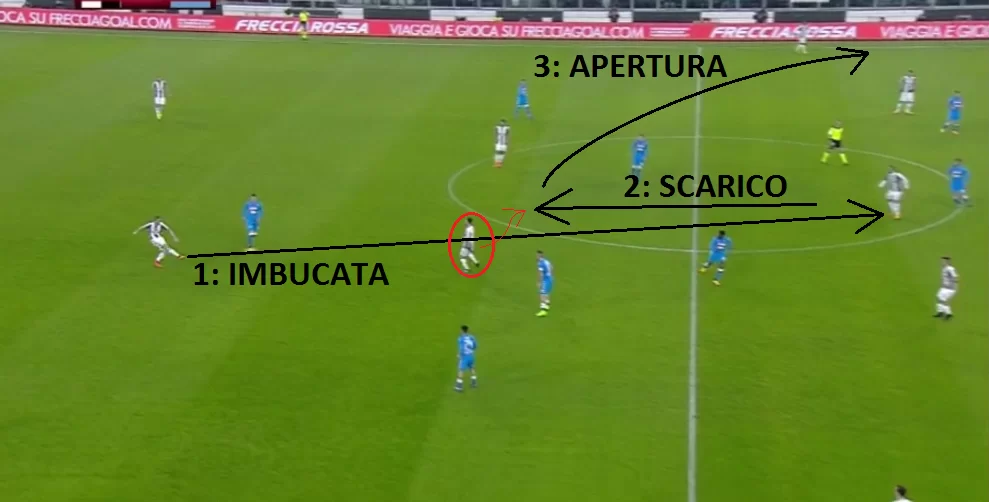 Superata la prima fase di impostazione, le soluzioni della Juventus si muovo sostanzialmente su tre possibili scelte: