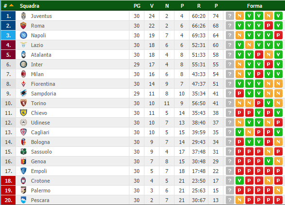 QUESTA LA CLASSIFICA: