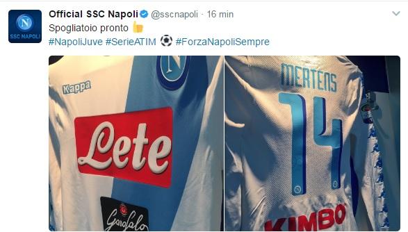 Sarà, infatti, ancora la maglia bianca quella che i partenopei indosseranno questa sera. A confermarlo un tweet dello stesso club che ha postato le foto dallo spogliatoio.