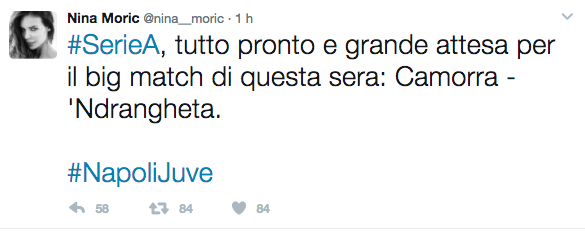 Ma quanto pubblicato sul suo profilo Twitter dalla soubrette Nina Moric fa discutere sia i tifosi del Napoli che quelli della Juventus.