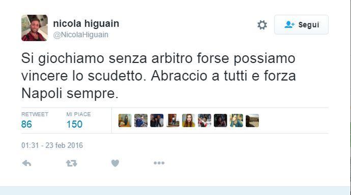 Perciò, Nicolas, quando hai scritto lo scorso anno “Forza Napoli Sempre” sei caduto in errore. Vedi, i social sono spesso un’arma a doppio taglio. Una piattaforma di sfogo, ma anche un punto di non ritorno. In quel “forza Napoli sempre” c’è un’espressione temporale chiara. Sempre, fino alla fine, come direbbero i tuoi nuovi beniamini. Quel 23 febbraio 2016, nella serata di Napoli-Milan, bastò un tweet al veleno contro gli arbitri per infiammare i tifosi, per illuderli che il legame tra la piazza e gli Higuain fosse indissolubile.