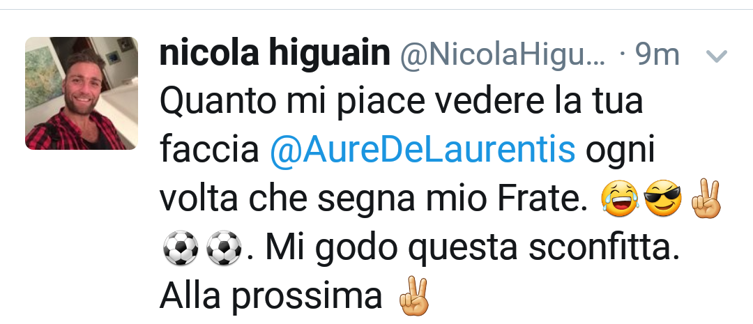 “Le parole di Nicolas Higuain? Nicolas rappresenta Gonzalo, di conseguenza dovrebbe adottare un tenore nell’esporsi in pubblico di un certo tipo. Non mi è sembrato un linguaggio da professionista. Questo però ci ha fatto capire quanto fosse logorato il rapporto tra la famiglia Higuain e De Laurentiis. Higuain ieri? A me è apparso più nervoso rispetto all’andata. Già dal riscaldamento rispondeva al pubblico. Secondo me ha provato a far capire che l’addio da Napoli non è stata colpa sua. Però alla fine ha scelto lui di andare alla Juventus“.