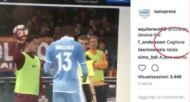 Nell’era dei social non si placano gli animi accesi dal clima del derby romano di Coppa Italia, ed anche una foto può creare un fiume di polemiche. È questo il caso della risposta che Felipe Anderson, ala brasiliana della Lazio, ha scritto sotto una foto postata su Instagram che vedeva Totti lanciare un pallone contro il difensore laziale Wallace in occasione di una rimessa laterale (con perdita di tempo dei biancocelesti).