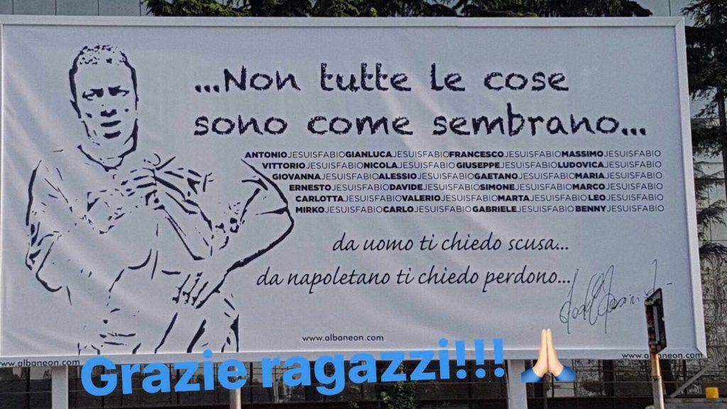 Un bel gesto è arrivato in giornata, visto che alcuni tifosi napoletani hanno affittato uno spazio pubblicitario, ponendo un cartellone nel quale si chiede scusa al calciatore, per il brutto trattamento che gli è stato riservato dai tifosi partenopei in questi anni, inconsci di cosa stesse realmente accadendo. Dal canto suo il calciatore ha pubblicato la foto di questo cartellone sulle sue Instagram Stories, commentando con un “Grazie ragazzi”, colorato d’azzurro.