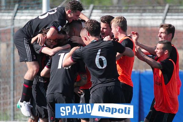 Una sconfitta che mette fine alla corsa del Napoli verso i play off, che ora distano 8 punti: il Milan ha vinto 2-1 quest’oggi a Sant’Antimo, contro gli azzurrini di Saurini. In alto la fotogallery dei momenti più importanti del match.