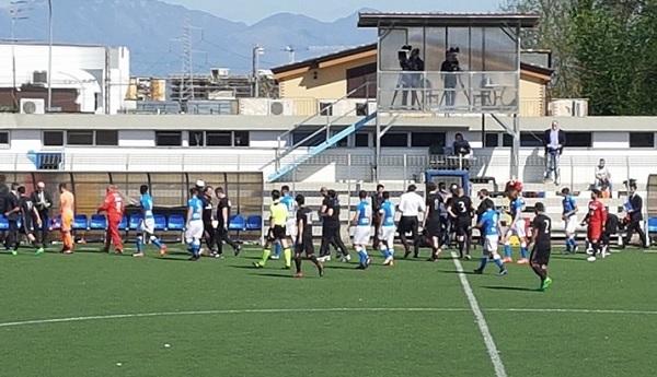 Il giocatore, apparso particolarmente nervoso, si è beccato prima con il suo tecnico, Stefano Nava, reo di avergli posto qualche appunto di troppo. Per poi spostare la propria attenzione verso il pubblico di Sant’Antimo e verso gli stessi azzurrini. Al triplice fischio finale ha poi fatto un gesto altamente provocatorio verso gli azzurrini. Ne è sfociato un parapiglia, solo dopo qualche minuto la calma è tornata sovrana.