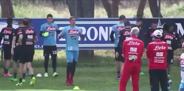 Si, perché da come dimostrano le immagini dell’allenamento pomeridiano degli azzurri, trasmesso in diretta su Facebook sulla pagina della società, anche il giovane portiere Davide Marfella oggi si è allenato agli ordini di Maurizio Sarri.
