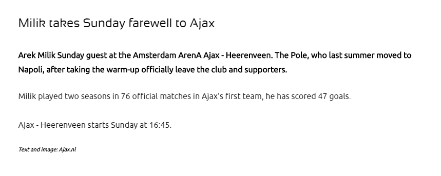 A riportarlo è il sito ufficiale dell’Ajax, con un comunicato. Il centravanti polacco partirà per Amsterdam dopo la sfida di domani sera contro l’Atalanta e sarà ospite della sua ex squadra a margine della sfida contro l’Heerenveen, programmata per domenica alle ore 16.45.