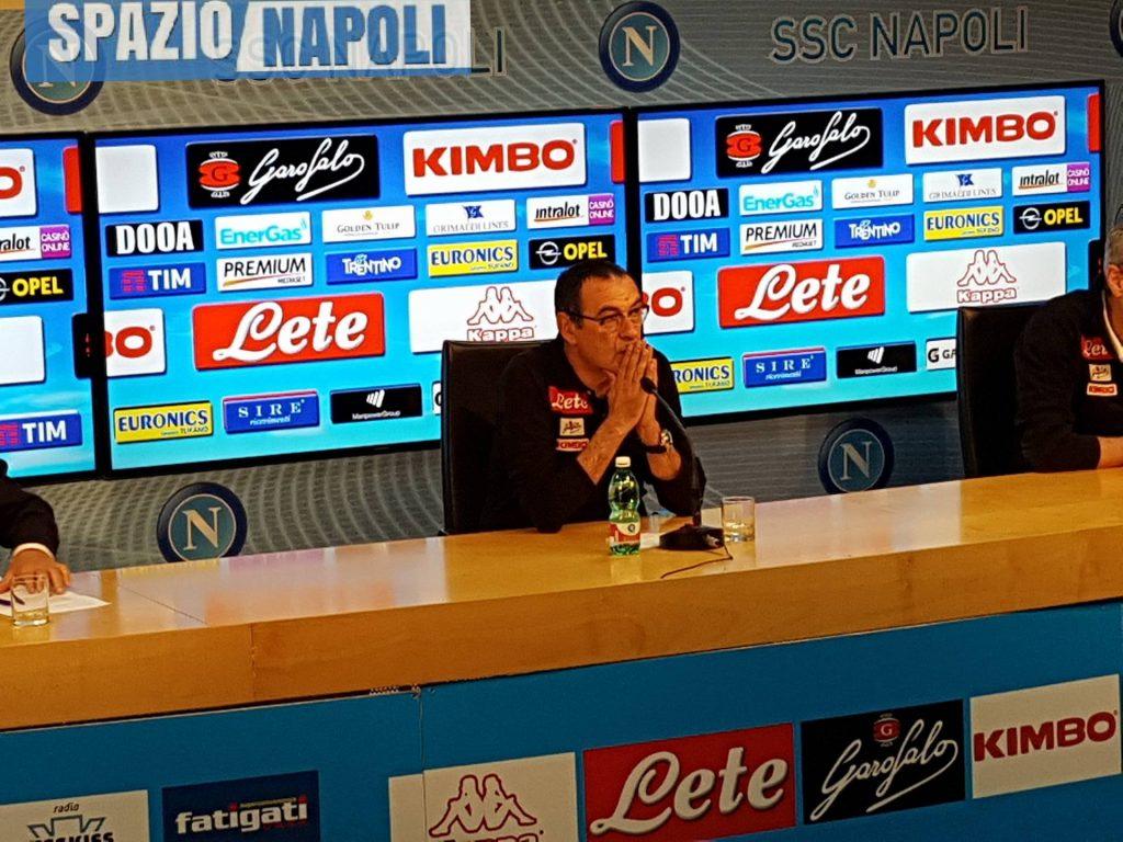 Il tecnico azzurro, Maurizio Sarri, ha rilasciato alcune dichiarazioni nella conferenza stampa di vigilia di Napoli-Udinese, azzurri in campo domani alle 20.45 in una sfida fondamentale nella rincorsa al secondo posto occupato dalla Roma.