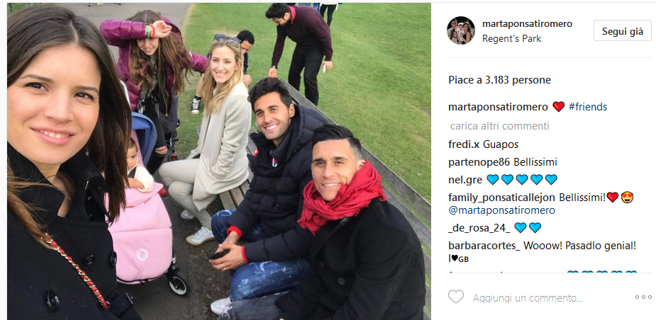 Questa la foto pubblicata dalla moglie di Callejon sul proprio profilo Instagram: