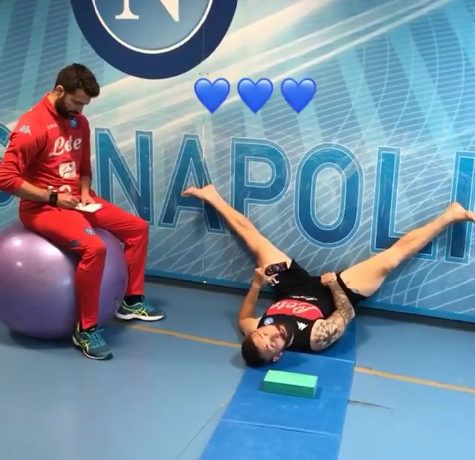 Mertens si è vendicato con la stessa moneta: altro video postato su Instagram, ma questa volta con Tonelli per protagonista. Il difensore è stato immortalato mentre era impegnato in esercizi con le gambe poggiate alla parete. Il belga non ha perso l’occasione per riprenderlo e metterlo in rete, con tanto di richiamo in napoletano, cuoricini e bacino finale. Il tutto condito da forti risate.