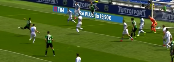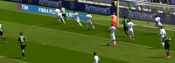 Sul calcio di punizione battuto da Ricci dalla trequarti destra, la difesa partenopea si predispone in linea per provare a mettere subito in fuorigioco i calciatori del Sassuolo. Cannavaro però è più lesto di tutti, ma trova un grande Reina ad opporsi. Sulla respinta del portiere spagnolo, la frittata.