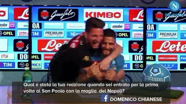 Simpatico siparietto avvenuto durante la diretta che ha visto Lorenzo Insigne rispondere oggi alle domande dei tifosi (GUARDA QUI). Infatti, mentre l’attaccante azzurro era intento a rispondere, è stato interrotto da Dries Mertens.