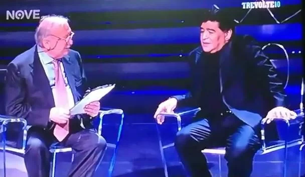 tra i vari ospiti intervenuti c’è stato anche il giornalista Gianni Minà, a cui Maradona racconta dello storico gol su punizione alla Juve: “Reina è qui in teatro e, da portiere, sa che era molto difficile far gol da quella posizione coi difensori della Juve tutti alti un metro e novanta in barriera. Dissi a Pecci di toccarmela poco poco, lui disse di no, io ripetevo “Eraldo, toccala e basta”, lui continuava “non puoi”, ed invece bastò il suo tocco, Tacconi fece il passo in avanti e io feci gol“.